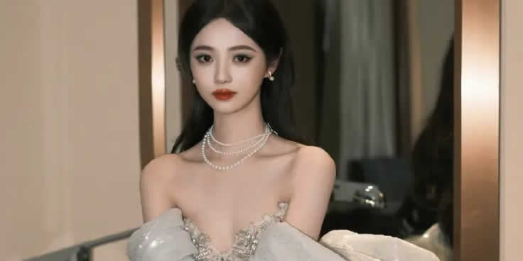 余优身着渐变礼服尽显优雅 纤美身形搭配珍珠项链 定格灵动瞬间